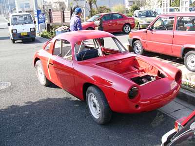 赤い車がやってきました。アバルト・レコルトモンツァといいます。