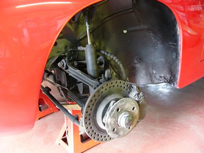したがってフロントサスペンションも独特の横置きリーフスプリング+ウイッシュボーンそのままですが、写真のようにうちの車にはディスクブレーキが取り付けられています。
