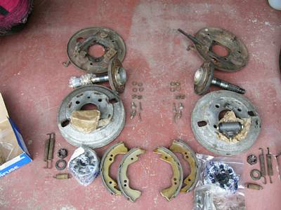 わがレコモンさんのリヤブレーキは、もともとディスクブレーキがついていたのを前の前の持ち主(ショップ)が外して売っちゃったそうで・・・とっほっほ。 で、哀れに思った前の持ち主(これもショップ)さんが「後から買って送る」とおっしゃってくれたのですが、そのブレーキパーツがやっと届きました。うわーこれはまた年季はいってるなあ〜。 でもまあ、シューとシリンダーとラバージョイントは新品だし、なんとかなるでしょー。
