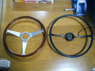 世間並みにボーナスなど出たので、やふおくでステアリングハンドルを買いました。左のほうです。