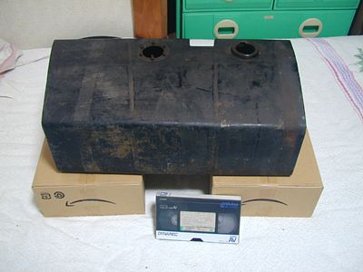 アメリカ人のオーナーさんからミニカーと交換で手に入れたガソリンタンクが届きました。 標準仕様の30リットルタンクです。 内部に錆はありますが、漏れなどはなさそう。キャップとフィッティングはフィアット600のものが小加工で使えるそうなので、まずは安心です。