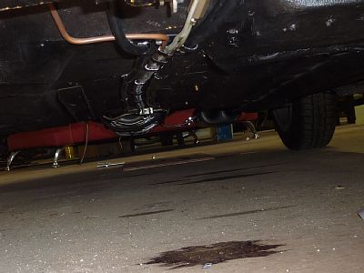 車の下を覗き込んだら・・・いやな水溜りを発見。