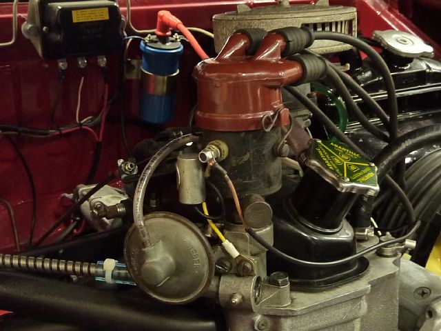先週カメラを忘れて撮り損ねたマレリのデスビ装着状態です。