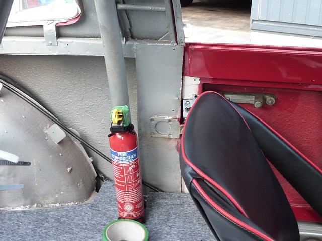 さて、アバルトにはもしものために消火器など装備しています。 これを使うことがないように、しっかり整備しておかなきゃ。