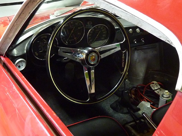 アバルトのエボナイトステアリング。当時はアバルトのデザインにしたがってペレッティやパーソナルが下請けで作っていたようです。意匠としてはスポークの切り込みがダブルバブルまでは小さく、レコルトモンツァからは写真のように根元まで切り込んだ形になります。まあうんちくはさておき・・・
