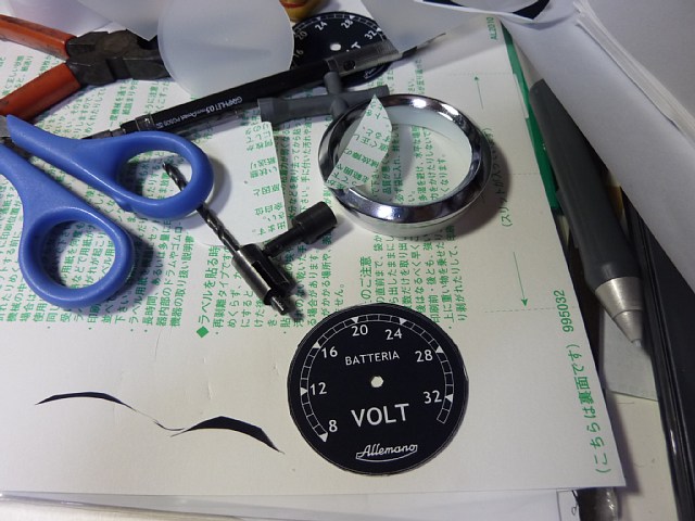 本来ここにはアレマーノ(カロッツェリアのアレマーノとは別会社)製のミッション温度計が入るのですが、そんなものが手に入るわけがなく(いちどオークションで見たがどえらい値段だった)ミッション温度計も通常使用で必要なものではないので、とりあえず安いφ52の電圧計を入れていたのでした。電圧計は充電の状態を知るための有効な手段であり、便利なのでまずはOK。