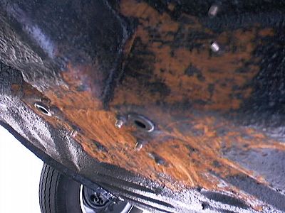 剥がれかけているアンダーコートにふと気がついたのが運の尽き。ペリッとめくったところ・・・うっきゃあああ、サビちゃんだあ。しかも旧車の大敵、赤錆。