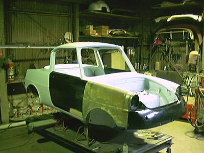 黒いところはカチオン電着塗装を施した部分、白いところはサフが入ったところです。 フェンダーはカチオンをかける前なので、サビサビです(^_^;) あとは床下のアンダーコートを剥がして塗るだけですが、これが結構重労働。 どなたかアンダーコートの効果的な剥がし方、おしえてください〜。