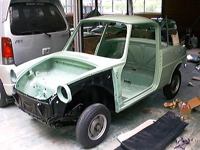 が、来週のために足回りの仮組みを済ませました。クーペのサスペンションはトーションラバーユニットごと車体にネジで止めるだけなので、ふたりで1時間もあれば装着できます。 とりあえず半年ぶりに4つのタイヤで車体を支えるクーペの勇姿。前後に1メートルほど転がしてみてはほろほろ、サスペンションをひこひこさせてみてはうるうる・・・ああ、ここまで長かったです。