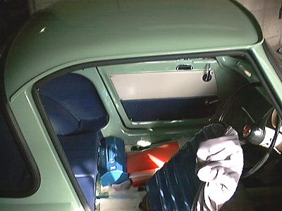 クーペは内装の張り替えが終わって帰ってきました。 でもウインドレギュレターハンドルが破壊されてるよ・・・